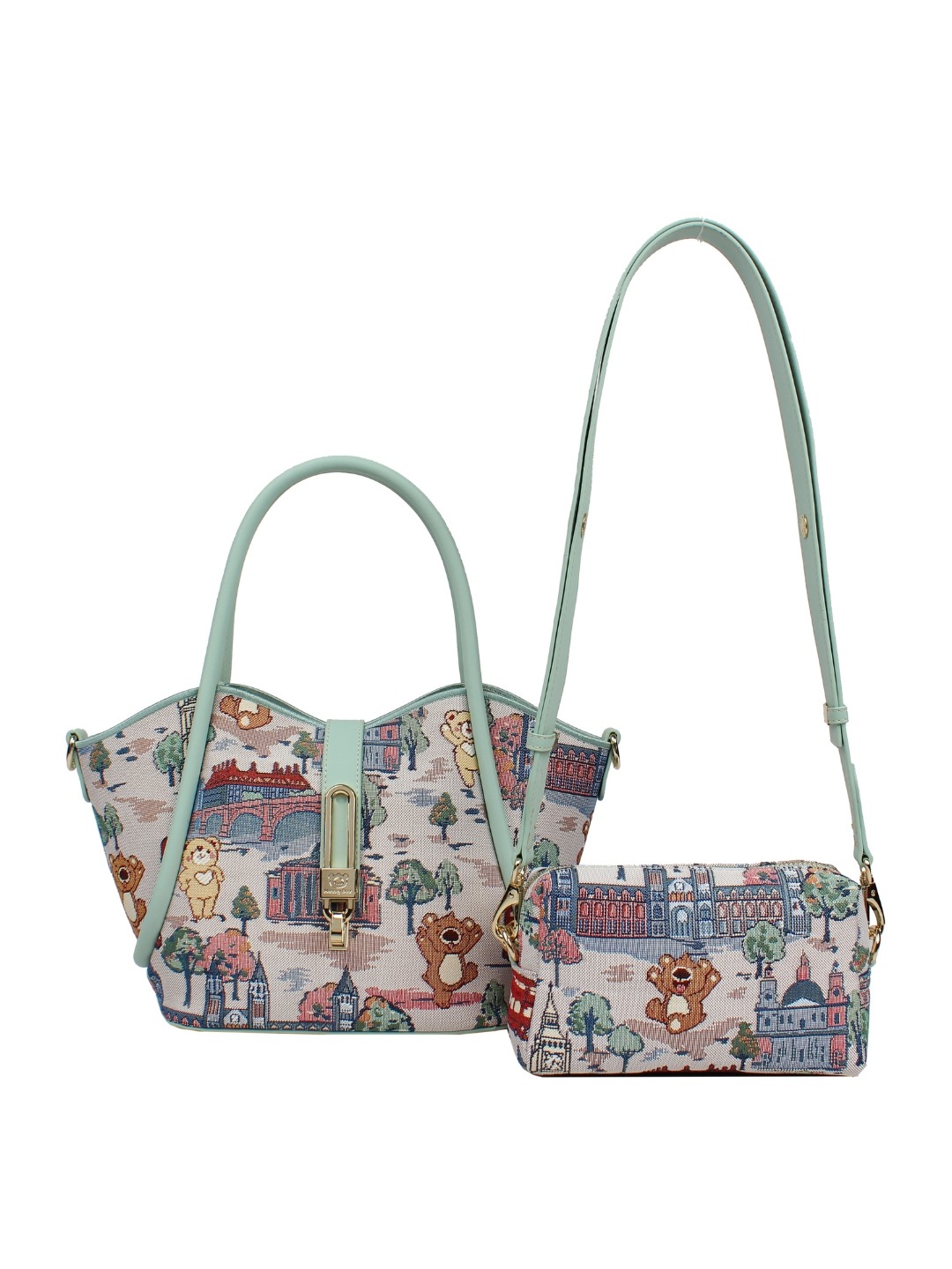 This bag showcases our brand’s classic crown bear design, a whimsical yet sophisticated representation of British heritage. The bear, adorned in regal attire, adds a touch of charm and character to the tapestry, embodying the spirit of royalty with grace and elegance.