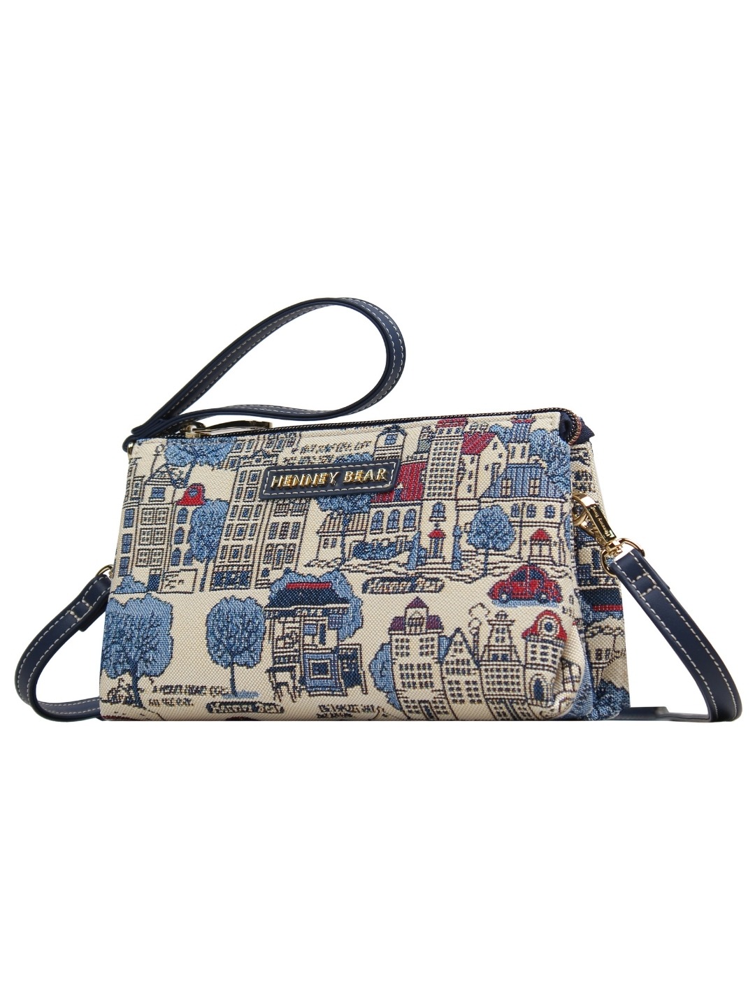 This sling abgs is a sophisticated blend of art and practicality. Designed in Henney Bear?s signature tapestry fabric with eco-conscious faux leather accents, it exudes timeless elegance. The structured hard-frame silhouette, enhanced with a signature metal lock and top handle, makes it stand out as a statement accessory. Inside, well-planned compartments keep your essentials secure, while the metal-and-leather strap offers a refined edge. Perfect for evenings out, special occasions, or a touch of everyday luxury, this sling bag is where fashion meets function with Henney Bear?s signature charm.