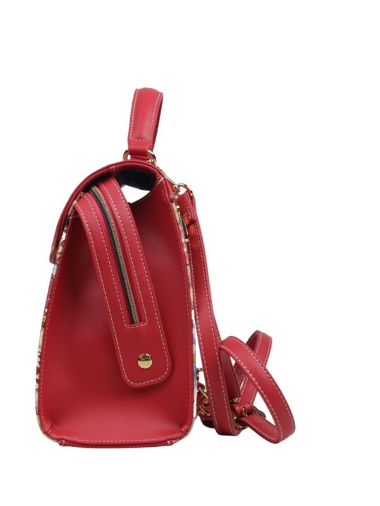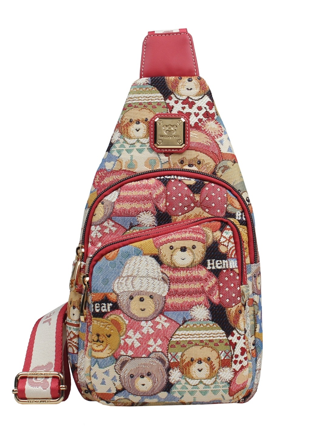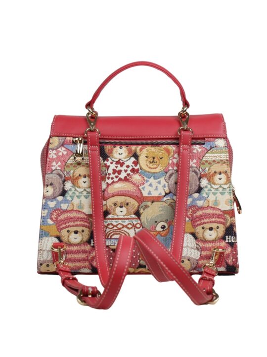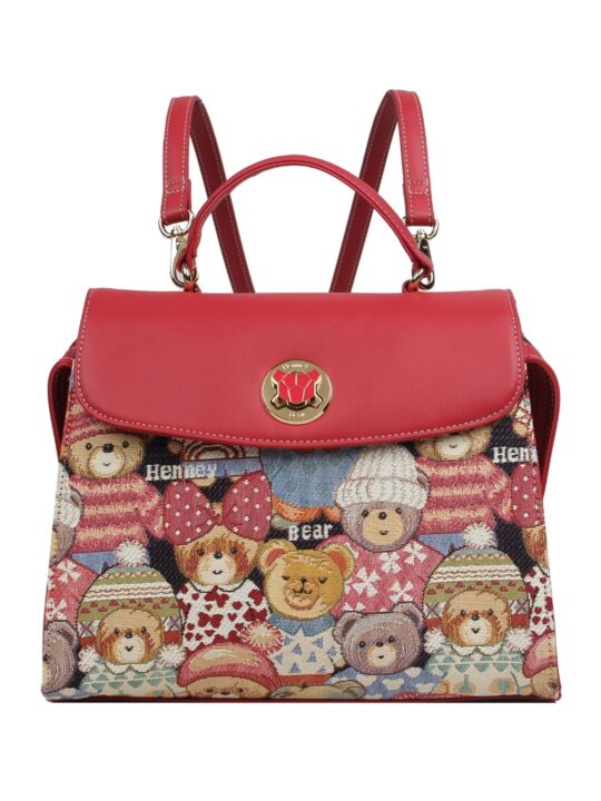 These backpacks are refined blend of fashion and function, perfect for modern women who value both style and convenience. Crafted with Henney Bear?s signature tapestry and accented with faux leather, it features a secure flap closure with a signature metal lock that adds a touch of luxury. Its compact yet spacious design makes it an ideal everyday companion, while adjustable straps ensure ease of carrying. The well-structured interior keeps essentials neatly organized, and protective metal feet enhance durability. A versatile piece that transitions effortlessly from casual outings to chic city strolls.