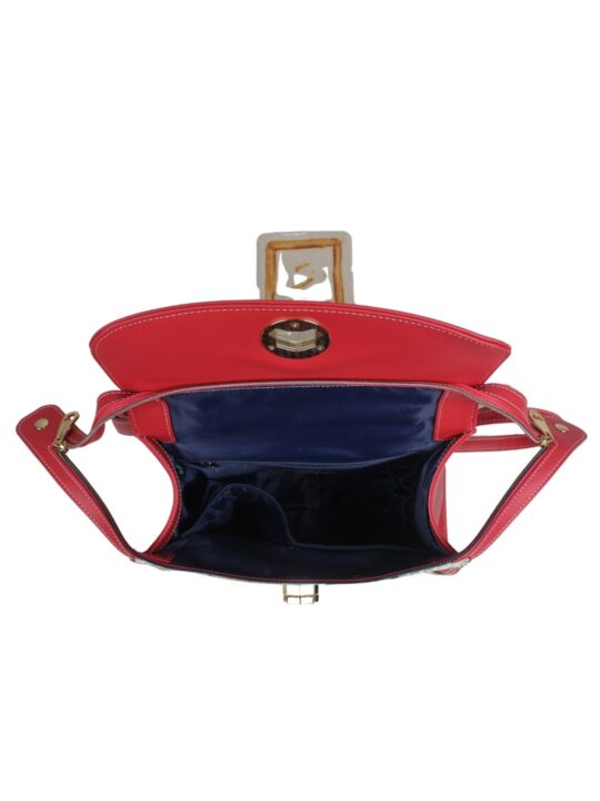 Main compartment with flap closure secured by Henney Bear?s signature metal lock