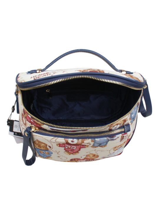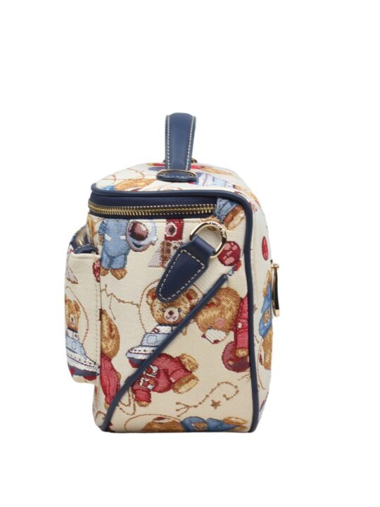 Designed for the sophisticated traveller, Henney Bear’s Vanity-style crossbody bag offers the perfect blend of style and organization. Crafted from elegant tapestry and detailed with signature hardware, this bag features a structured interior with a slide-in slot, a zipper pocket, and a spacious main compartment for easy access to essentials. The zip-top closure keeps everything secure while the easy-to-clean lining adds practicality. Ideal for makeup, toiletries, and tall bottles, this crossbody bag is a chic and functional choice for those who value both fashion and convenience on the go.