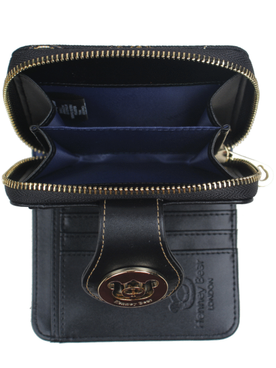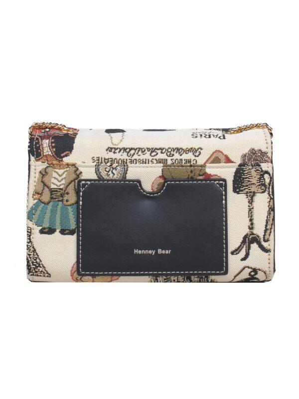 Compact yet spacious, this Henney Bear Purse is thoughtfully designed to keep your essentials organized in style. Crafted from signature tapestry fabric with faux leather accents, it blends durability with elegance. The soft polyester interior is lined with Henney Bear?s signature pattern, adding a refined touch inside and out.